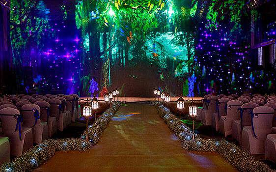 將這樣的空間布置成結(jié)婚禮堂要多久? 博視界科技的答案是 一秒! 一鍵啟動投影 一秒切換場景 百變場景…